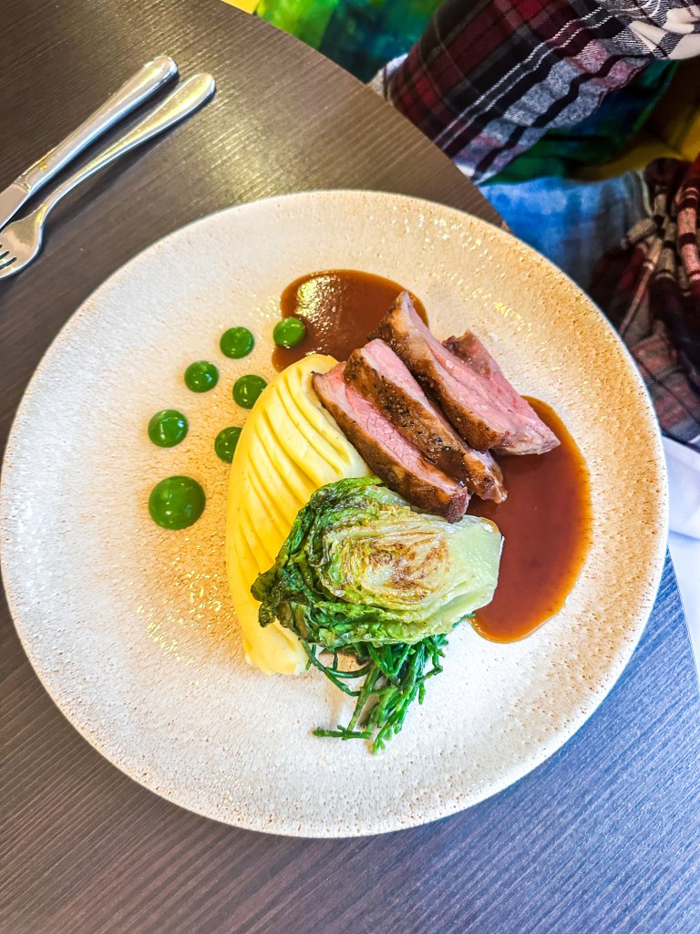 While we waiting for the mains, we were brought an Apple sorbet to help cleanse the pallet. This was so good super refreshing and was presented in a desert glass with pretty edible flowers. Just the perfect little treat before your main and it did really help cleanse the pallet.