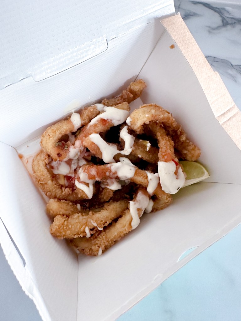 Placing the order was super easy on the Deliveroo app, bonus was the evening we placed our order, there was a 20% a £20 spend. We ordered the, Crispy Chilli Squid, Kingston Fried Chicken + Spiced Fries, Curry Goat & Rice, Side of Spiced fries.