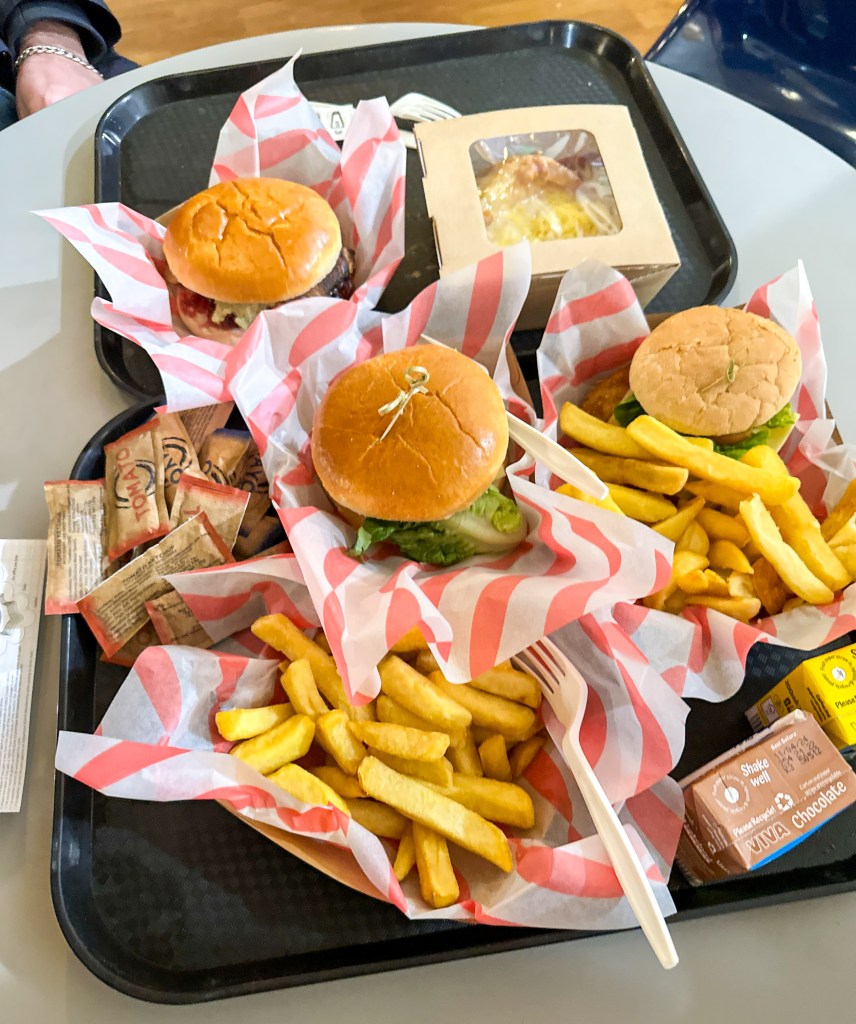 We tried a selection of their food to be able to give you our thoughts, E had the 8oz cheeseburger and chips he said it was 10/10. L had the chicken cheese burger and chips; the chicken was so delish. Luke opted for something on their festive menu, the Turkey stuffing and cranberry burger which he thoroughly enjoyed and I had a Jacket potato with cheese and beans but got major food envy over L’s Chicken burger. Luke had a hot chocolate with cream and marshmallows and they boys had 2 milkshakes each and the total came to £40.00 which for a family of 4 all adult meals I think is very reasonable.