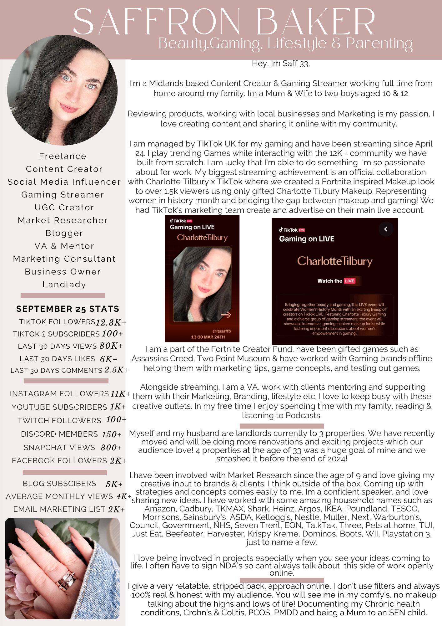 Supporting Others – I have created multiple support groups on Facebook to connect people and to help mentor, teach and guide them on how to grow and expand there social media presence online, how to work with brands, Mindset and building up there confidence.